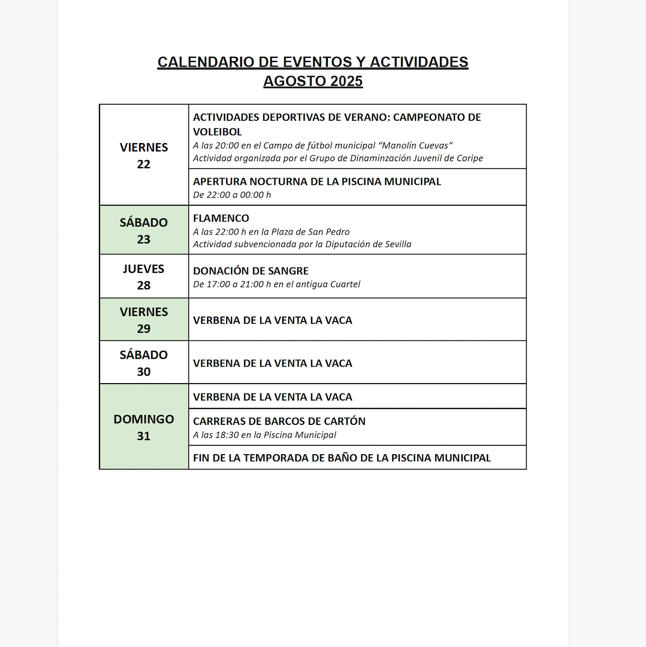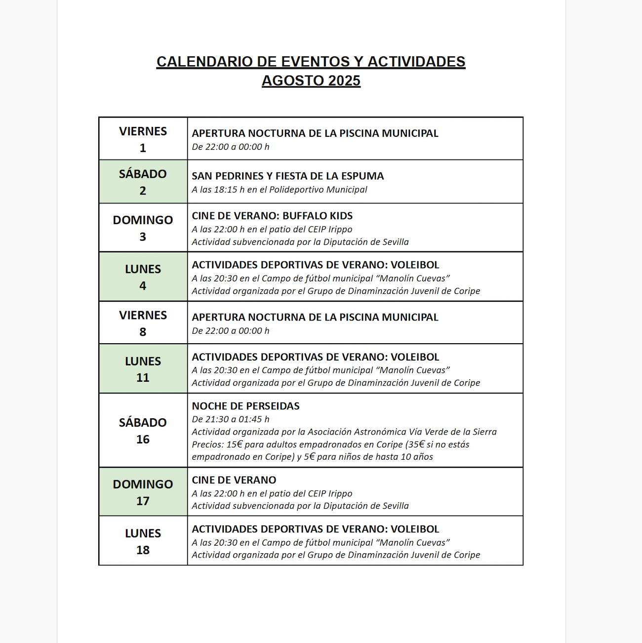 Imagen Imágenes Ubicación Categoría noticia Cultura Mostrar en el carrusel de la sección No Fecha Jue, 31/07/2025 - 07:30 Más información https://www.coripe.es/es/actualidad-y-agenda/actualidad/Calendario-de-actividad…