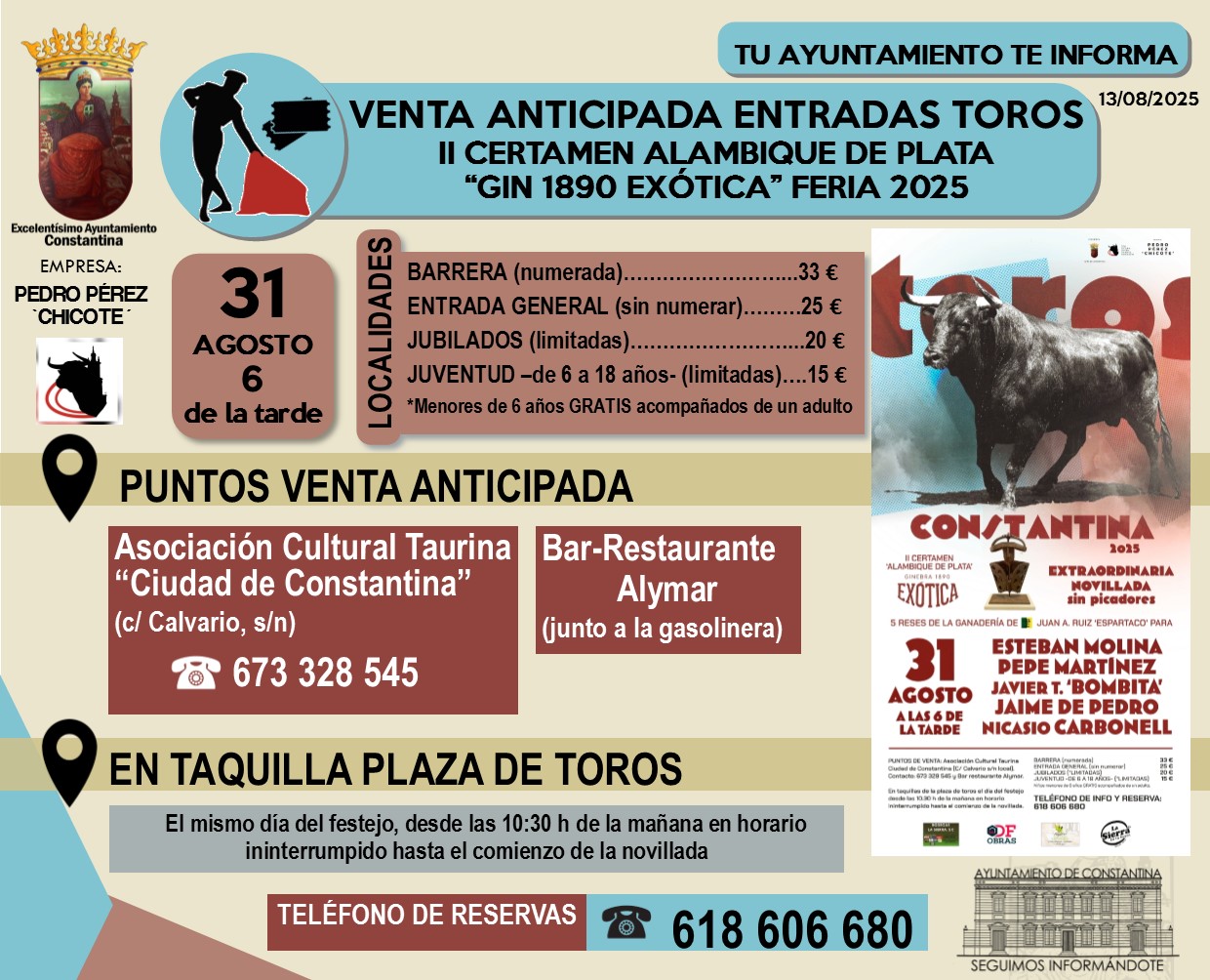 La exposición "Carteles Taurinos Antiguos", inaugurada el 11 de agosto, en el Museo Etnográfico de nuestra localidad, ofrece un recorrido excepcional por la excelente historia taurina de Constantina a través de una selección de carteles de muchas épocas distintas.