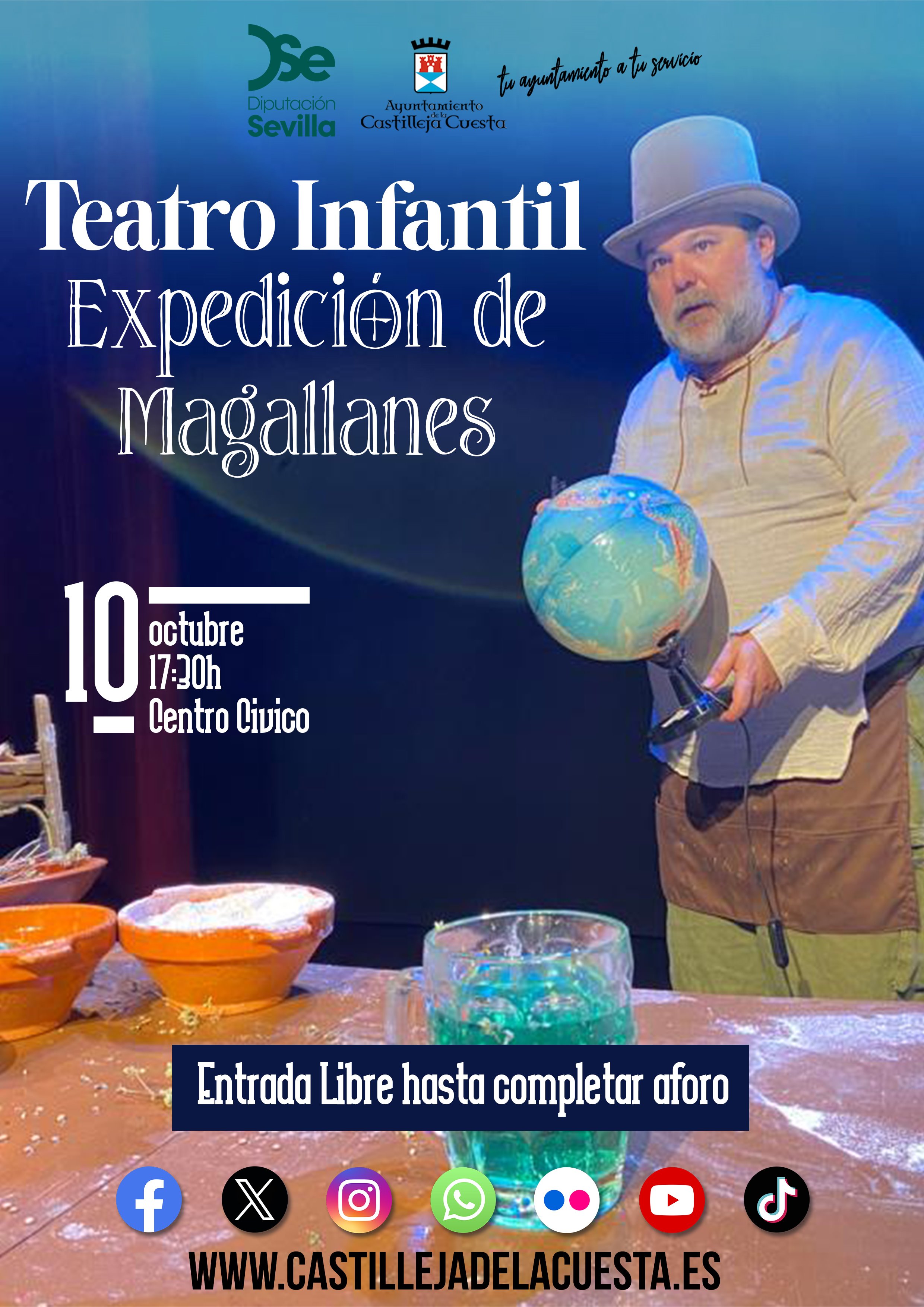 Fecha inicio Vie, 10/10/2025 - 13:17 Fecha fin Vie, 10/10/2025 - 13:17 Imágenes Ubicación Categoría evento Ciudadanía Mostrar en el carrusel de la sección No Más información http://www.castillejadelacuesta.es/es/actualidad/eventos/Teatro-infantil-Expedi…