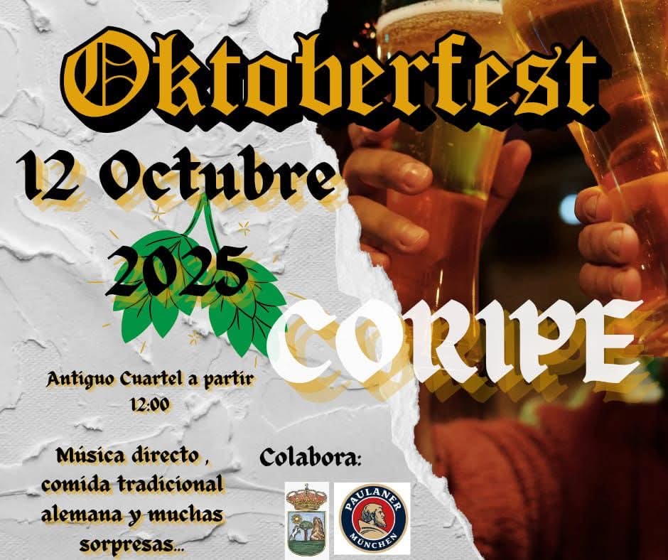 Fecha inicio Dom, 12/10/2025 - 14:00 Fecha fin Dom, 12/10/2025 - 17:00 Imágenes Ubicación Categoría evento Cultura Mostrar en el carrusel de la sección No Más información https://www.coripe.es/es/actualidad-y-agenda/agenda/Fiesta-de-la-cerveza-Oktobe…