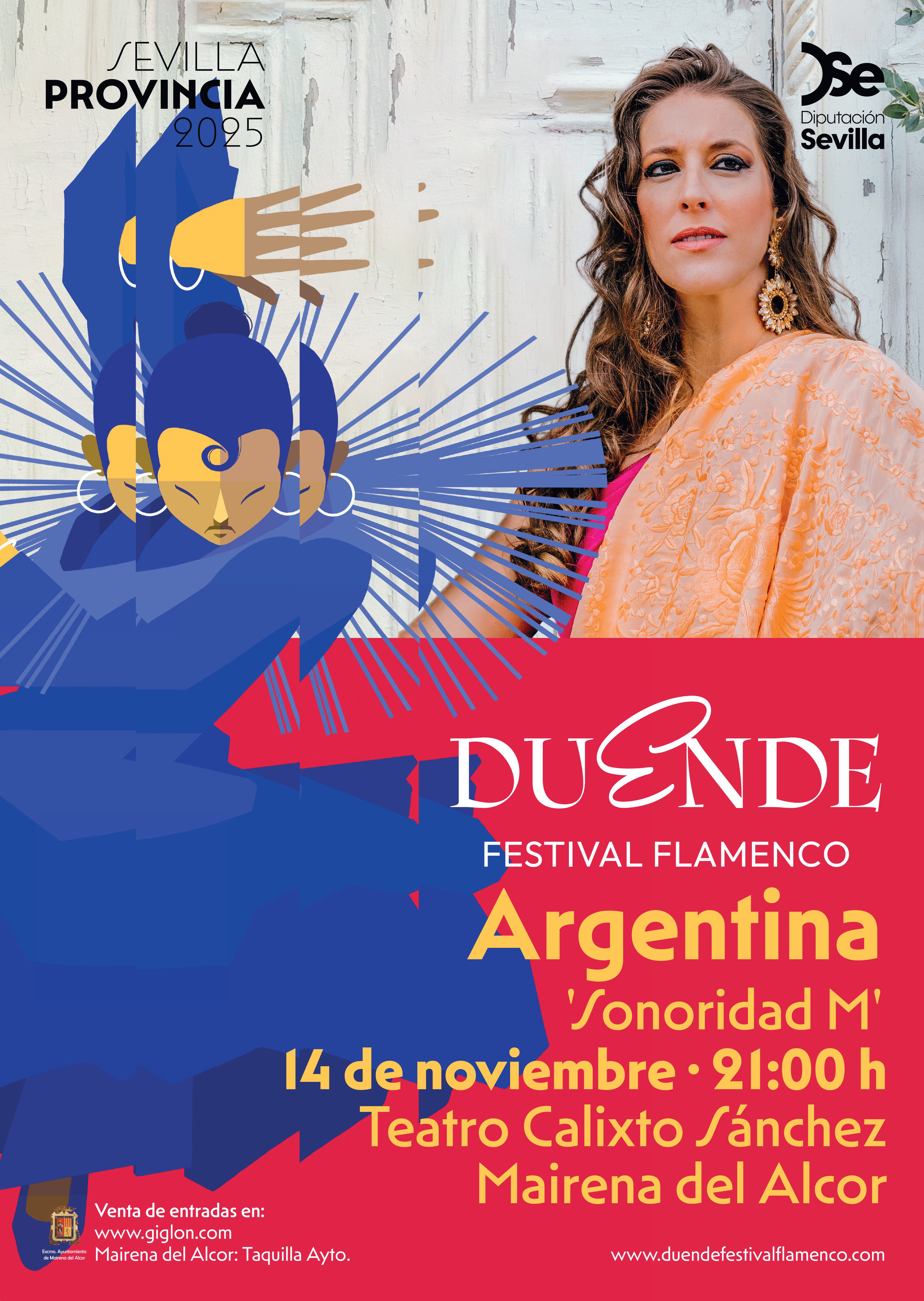 La primera edición del Festival Flamenco Duende de la Diputación de Sevilla hace escala en Mairena del Alcor con una artista de primer nivel como es Argentina. La cantaora pisará las tablas del Teatro Calixto Sánchez con su concierto "Sonoridad M". Se trata de una revisión del sonido que producen las mujeres cantaoras a través de sus gargantas desde que se conoce la aparición de la primera mujer cantaora hasta hoy día. Con este espectáculo, Argentina quiere destacar y evocar "la sonoridad de la mujer en el cante".