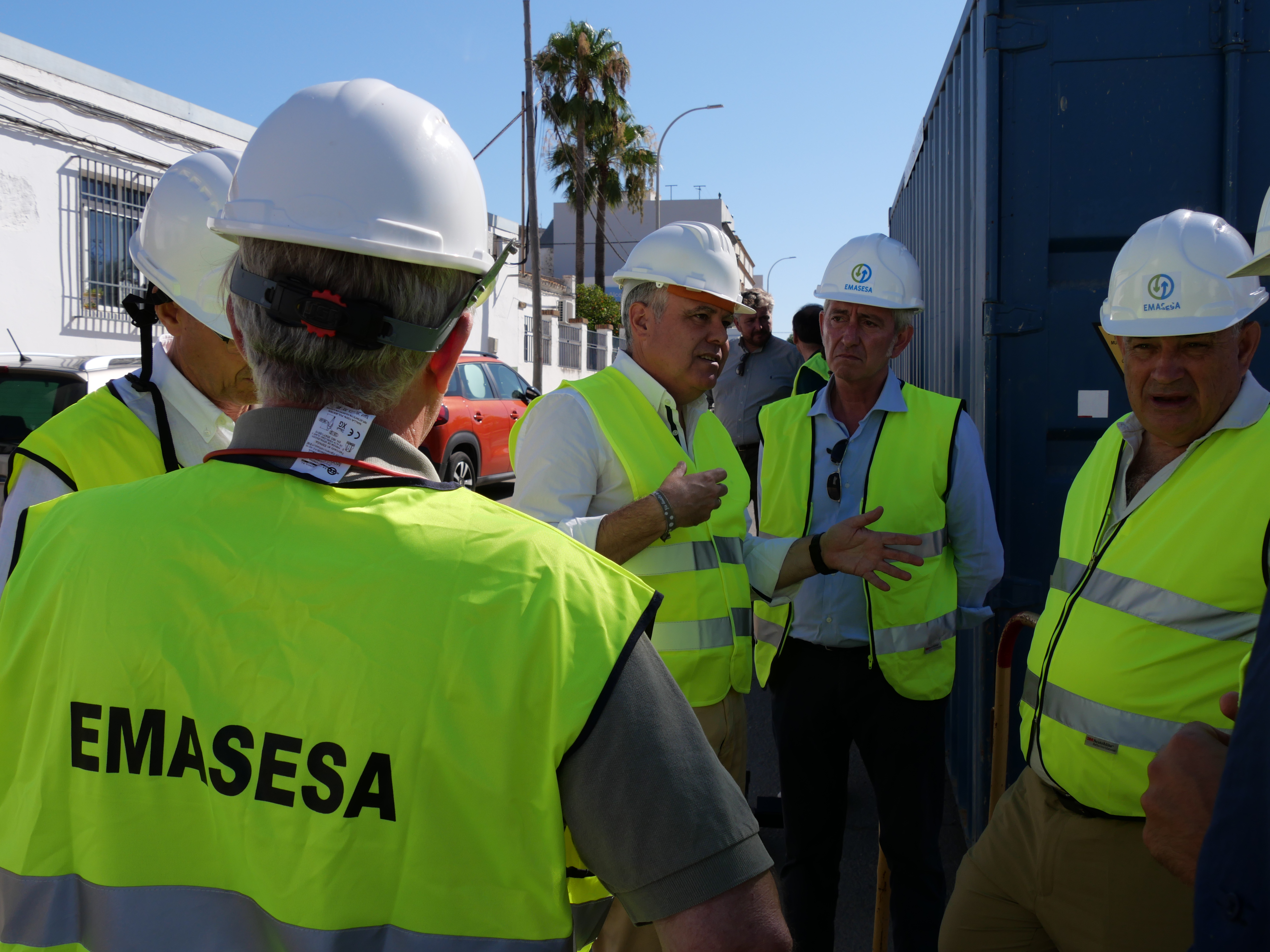 El Alcalde, Juanma López, visita las obras de la calle Pedro Crespo acompañado por el Consejero Delegado de Emasesa, Manuel Romero, que explica que estos trabajos estaban previstos para dentro de 2 años y se han adelantado como respuesta a las necesidades de los vecinos y la llamada del Alcalde.
