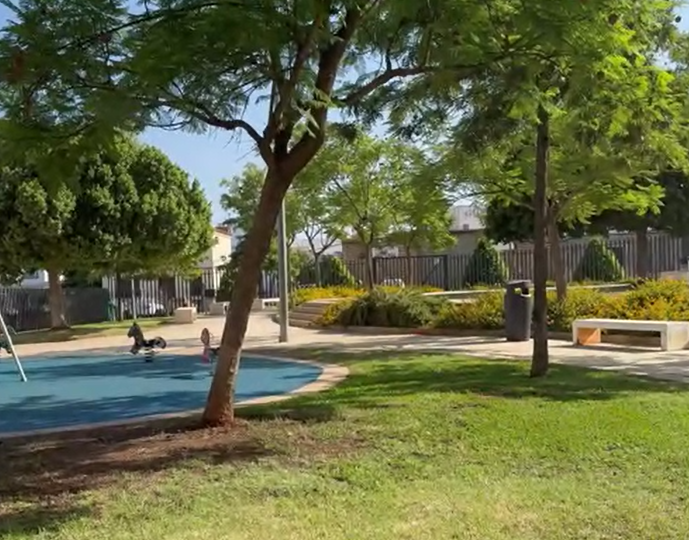 El alcalde, Juanma López, anuncia la reapertura de la plaza Los Pintores tras terminar las obras de remodelación en la zona de juegos infantiles.