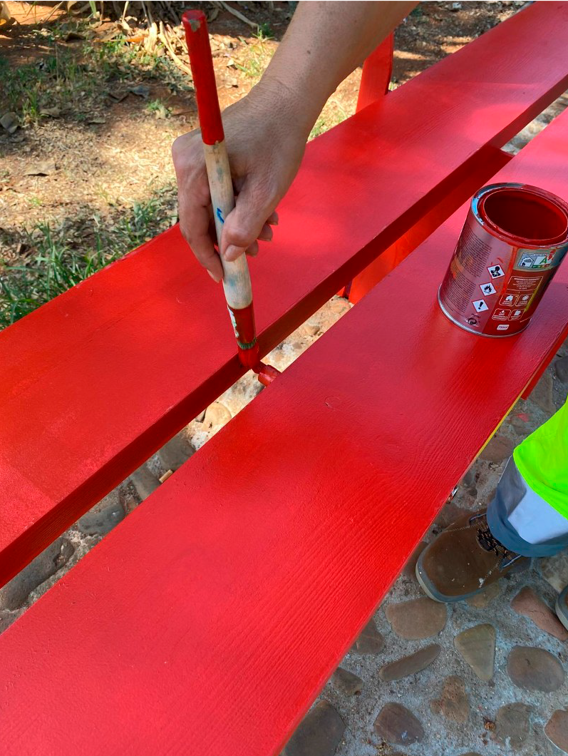 Concretamente han reparado ocho bancos de colores y diez bancos auxiliares. Otro de los trabajos que el alumnado está llevando a cabo, es la fabricación de ocho merenderos tipo picnic para su posterior colocación en este parque.