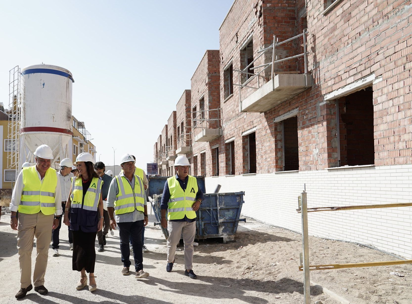 La consejera de Fomento, Articulación del Territorio y Vivienda, Rocío Díaz, ha visitado junto al alcalde de Mairena del Alcor, Juan Manuel López, las obras de una promoción de 34 viviendas protegidas en régimen especial de alquiler en el municipio sevillano, que ya han alcanzado el 50 % de ejecución. Esta promoción, que está promoviendo el Ayuntamiento en el barrio de La Cebonera, ha recibido una subvención de 1,2 millones de euros de la convocatoria del programa de Fomento del Parque de Vivienda en Alquiler de la Junta de Andalucía, financiado por el Plan Vive y el Plan Estatal, para su construcción. Esta ayuda sufraga cerca de la mitad del coste total de la intervención, que cuenta con una inversión de más de 2,6 millones de euros.
