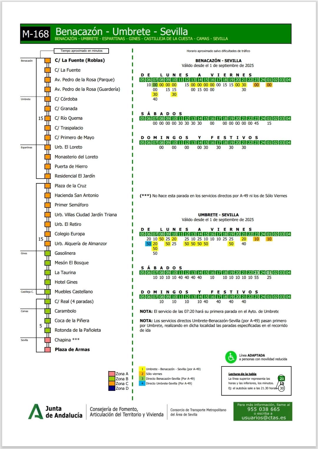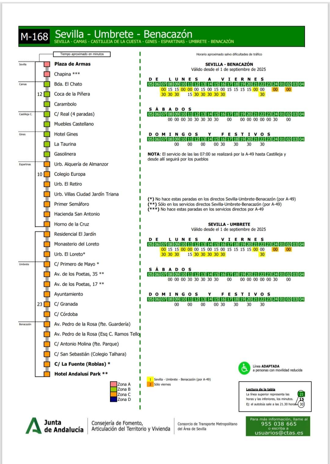 *Para más Información, puedes contactar con el Consorcio de Transporte Metropolitano del Área de Sevilla: Teléfono: 955 038 665 / Correo electrónico: usuarios@ctas.es