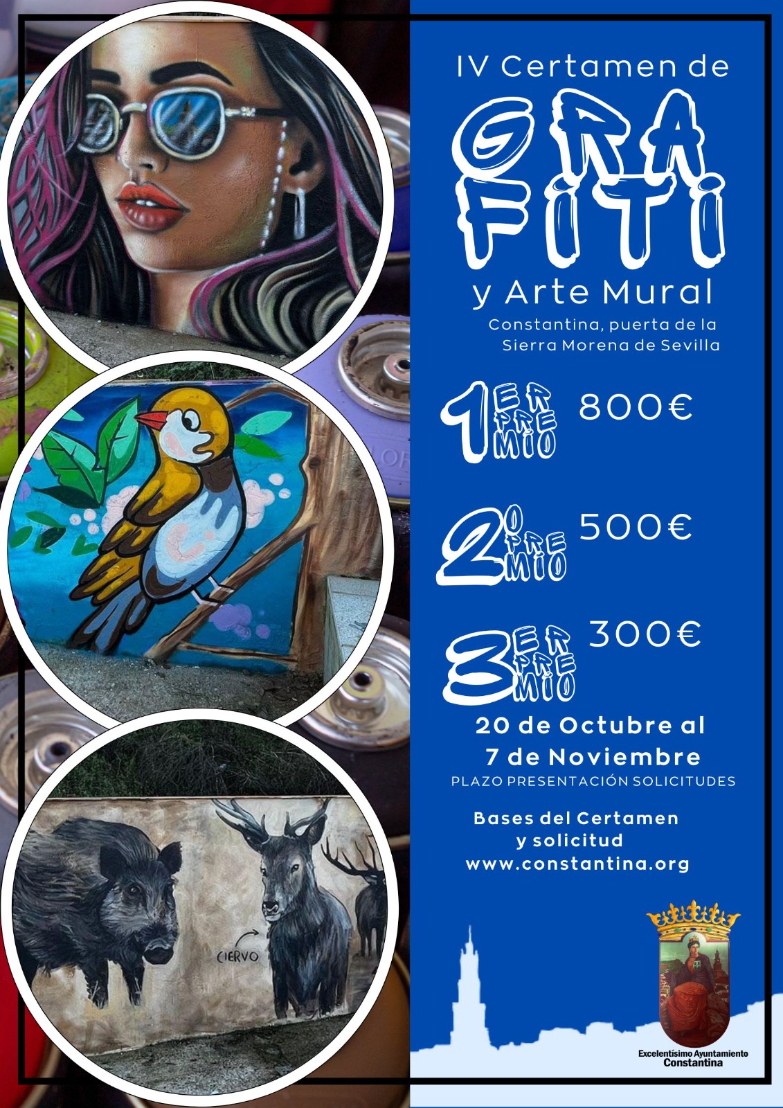 El Ayuntamiento de Constantina, a través de su delegación de Cultura y Juventud convoca el IV Certamen de Grafiti y Arte Mural: Constantina, puerta de la Sierra Morena de Sevilla.