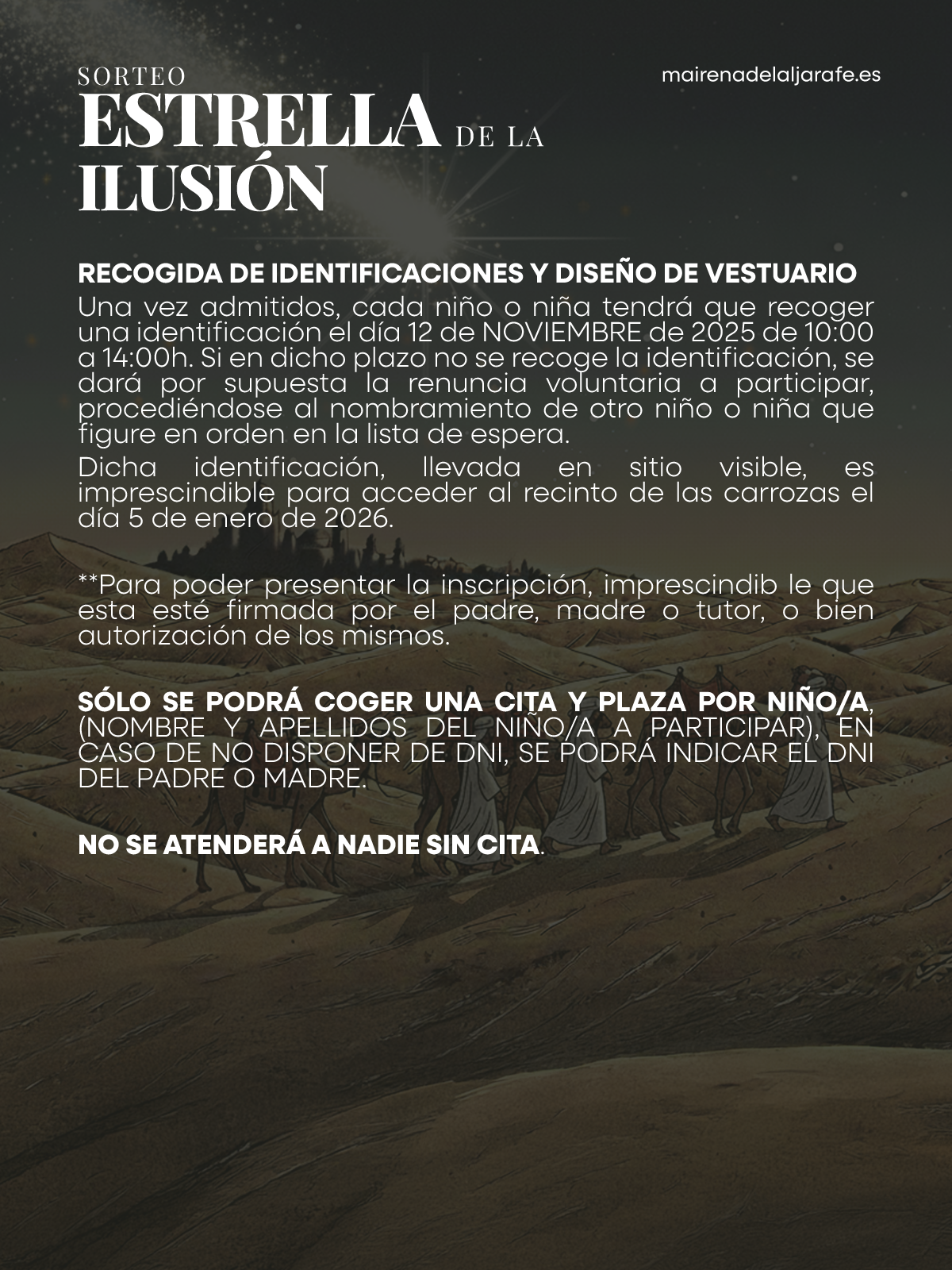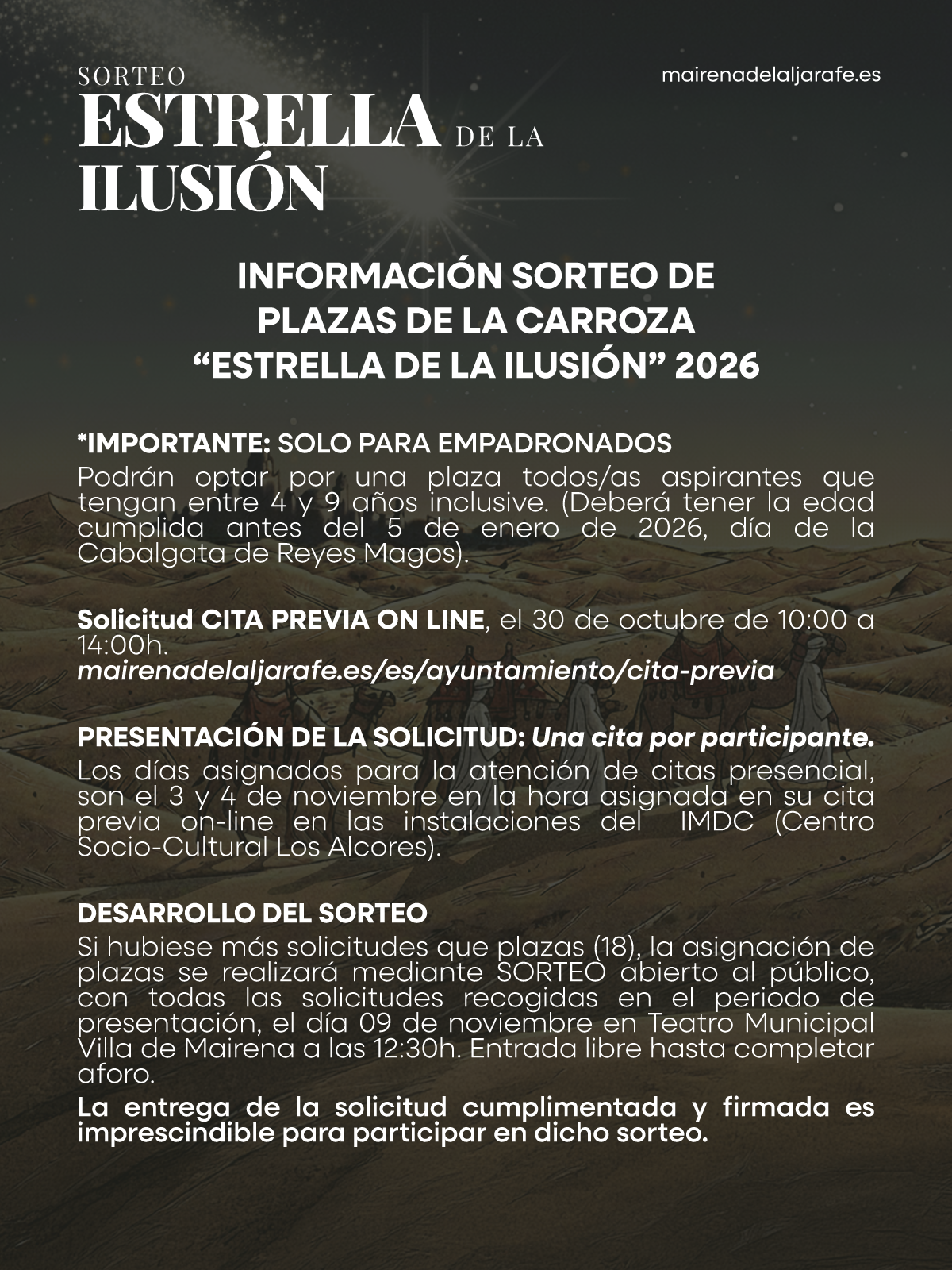 Consulta el documento anexo "Protocolo Cita Previa para participar en el sorteo de la Carroza Estrella de la Ilusión 2026" disponible en la web municipal.