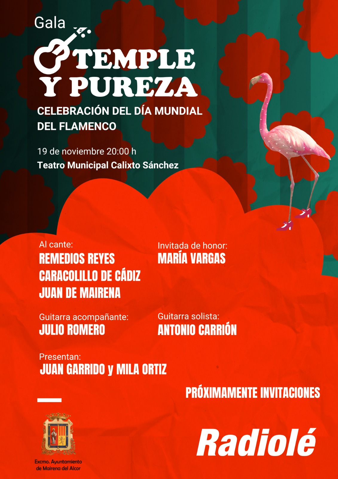 Nueva gala del programa Temple y Pureza de Radiolé, presentado por Juan Garrido y Mila Ortiz. La gala rinde homenaje al Día Internacional del Flamenco y cuenta con un cartel de lujo: Remedios Reyes, Caracolillo de Cádiz y Juan de Mairena al cante, María Vargas como invitada de honor, Julio Romero a la guitarra y Antonio Carrión como guitarra solista.