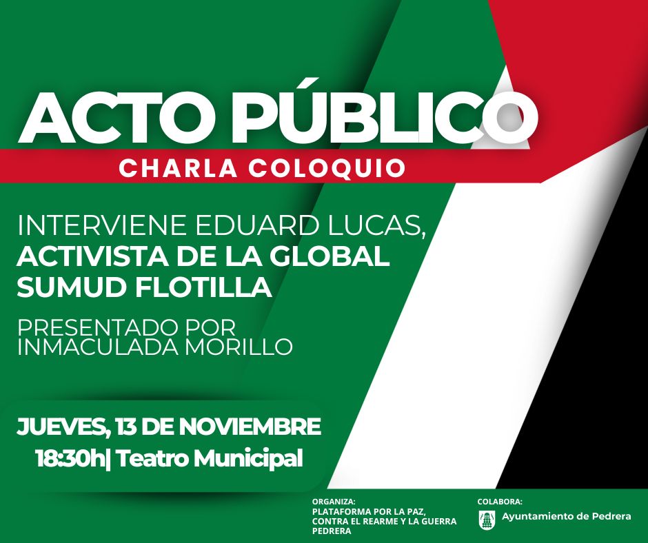 Se trata de una charla-coloquio que contará con la intervención de Eduard Lucas, activista de la Global Sumud Flotilla y miembro de la IAC (Intersindical Alternativa de Cataluña), quien compartirá su testimonio y experiencia directa en el trabajo de solidaridad con el pueblo palestino.