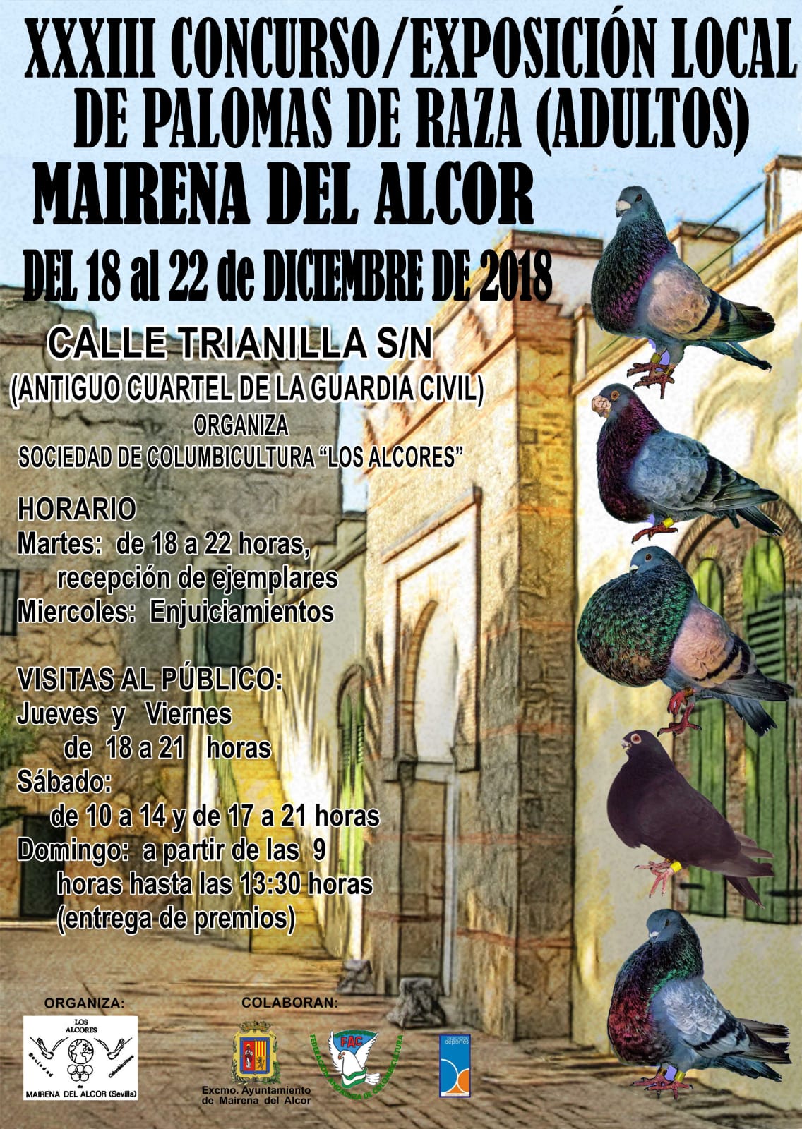 Hasta el domingo 23 de diciembre se puede visitar la exposición del 33º Concurso Local de Palomas de Raza que organiza la sociedad colombicultura Los Alcores, en colaboración con la Delegación de Deportes del Ayuntamiento de Mairena del Alcor y la Federación Andaluza de Colombicultura.