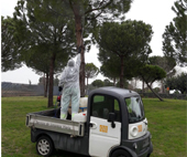 En nuestra localidad se observa anualmente la presencia de esta plaga en las masas de pinos existentes en parques y jardines. "Hasta el momento se ha realizado el tratamiento en los parques municipales Tierno Galván, Norte y el entorno de la calle Alejandro Casona. En los próximos días se realizará en calle Al-Mutamid, plaza de los Escritores, nucleo residencial Castillo de Luna, barrio Las Palmeritas, CEIP Juan Caraballo, CEIP Antonio González y CEIP Isabel Esquivel" ha indicado José Navarro, delegado municipal de Urbanismo.