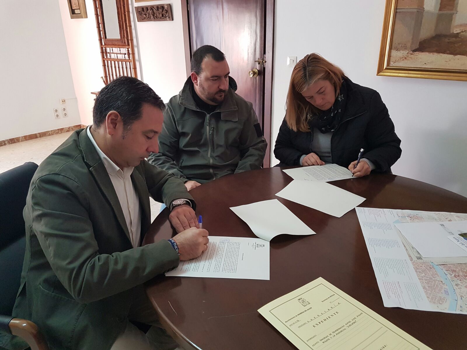 El Ayuntamiento de Mairena del Alcor ha firmado un convenio de colaboración con la asociación Evolucan para el desarrollo del proyecto Educar a personas a través del perro. Esta mañana en el salón de comisiones consistorial han rubricado el documento Ricardo Sánchez, alcalde de Mairena del Alcor, y Dolores Ruiz, representante de la asociación.