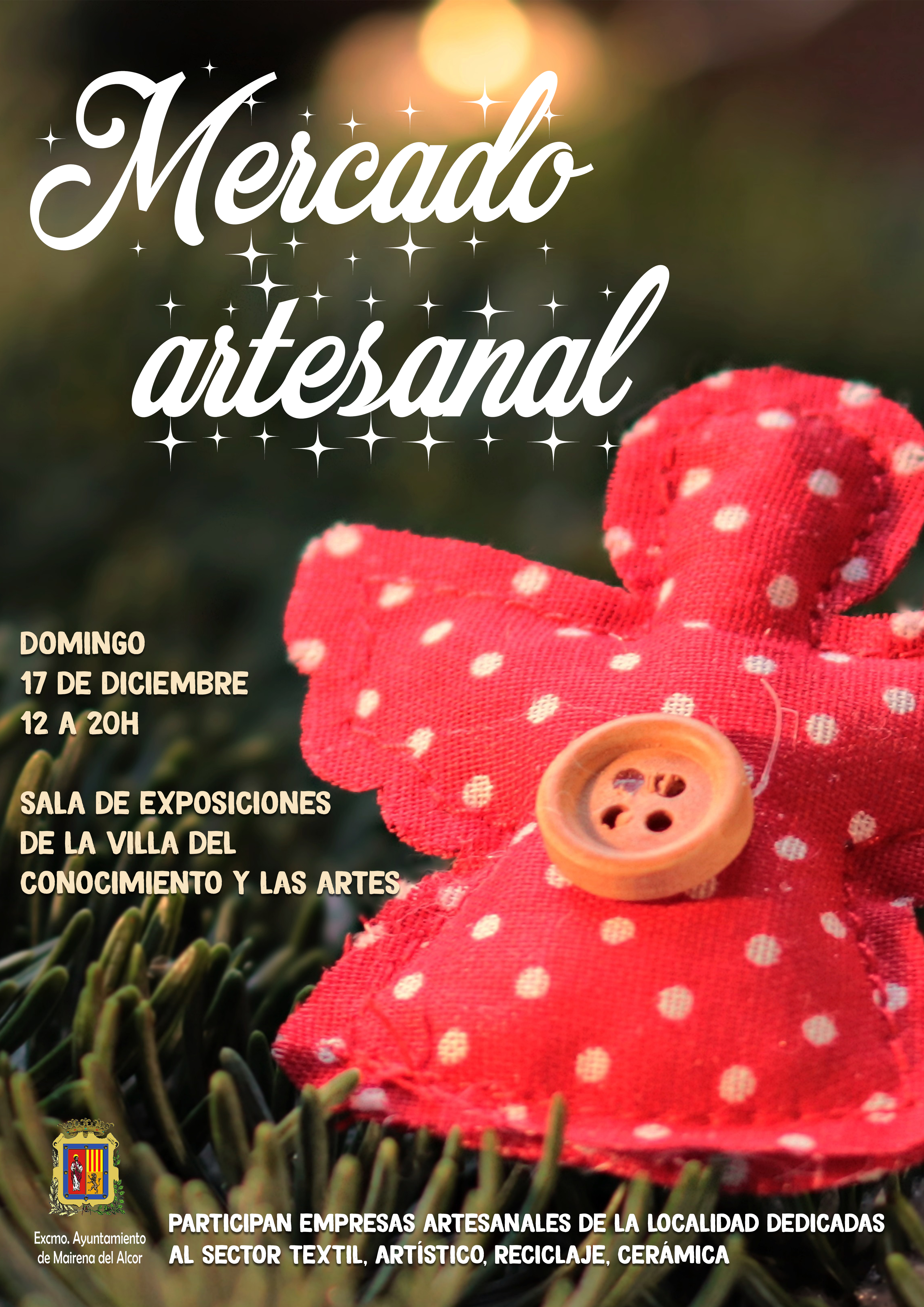 Este domingo día 17 abrirá sus puertas un Mercado Artesanal en la sala de exposiciones de la Villa del Conocimiento y las Artes de 12 a 20 horas. Participarán diferentes asociaciones y empresas maireneras exponiendo sus productos artesanales, que estarán a la venta.
