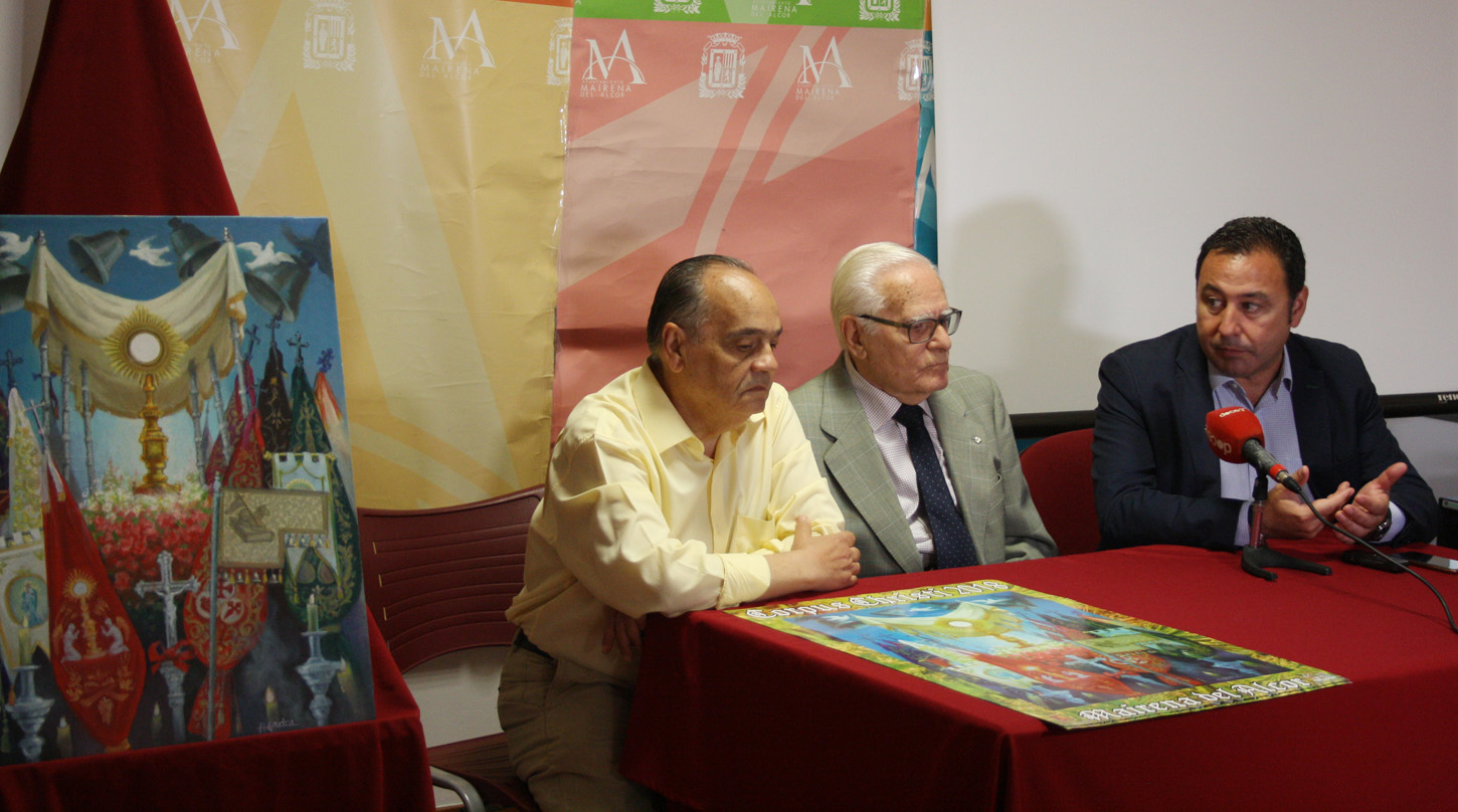 Esta mañana se ha presentado el cartel del Corpus Christi 2018 en la Villa del Conocimiento y las Artes, en un acto que ha presentado el alcalde de Mairena del Alcor, Ricardo Sánchez, y han participado el autor del cartel, Antonio Gavira, y el hermano mayor de la Hermandad Sacramental, Eusebio Pérez.