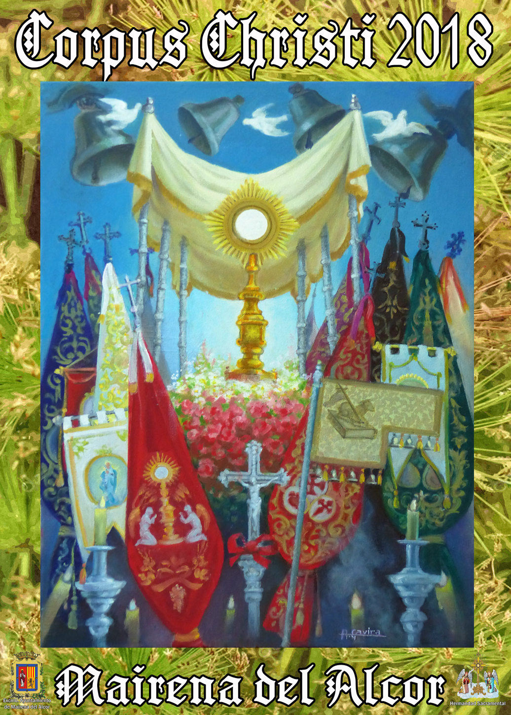Antonio Gavira se comprometió hace tiempo a hacer el cartel del Corpus todos los años, no obstante, el artista ha matizado que "si algún artista mairenero quiere hacerlo, tiene las puertas abiertas". "El cartel es interesante, más que por el aspecto artístico o pictórico, por el mensaje que transmite en torno a las hermandades y asociaciones religiosas que representan a todos los maireneros al servicio de la iglesia por mediación de la eucaristía".