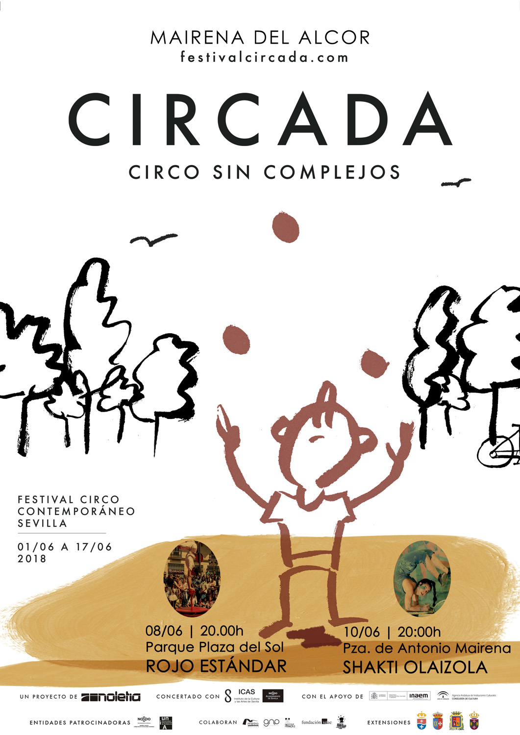 El Festival Circada acercará las últimas tendencias circenses a Mairena del Alcor, los días 8 y 10 de junio en el Parque Plaza del Sol y la Plaza Antonio Mairena. Los espectáculos son Rojo Estándar y Baldín Badá, ambos de entrada gratuita, comenzarán a las 20.00 horas.