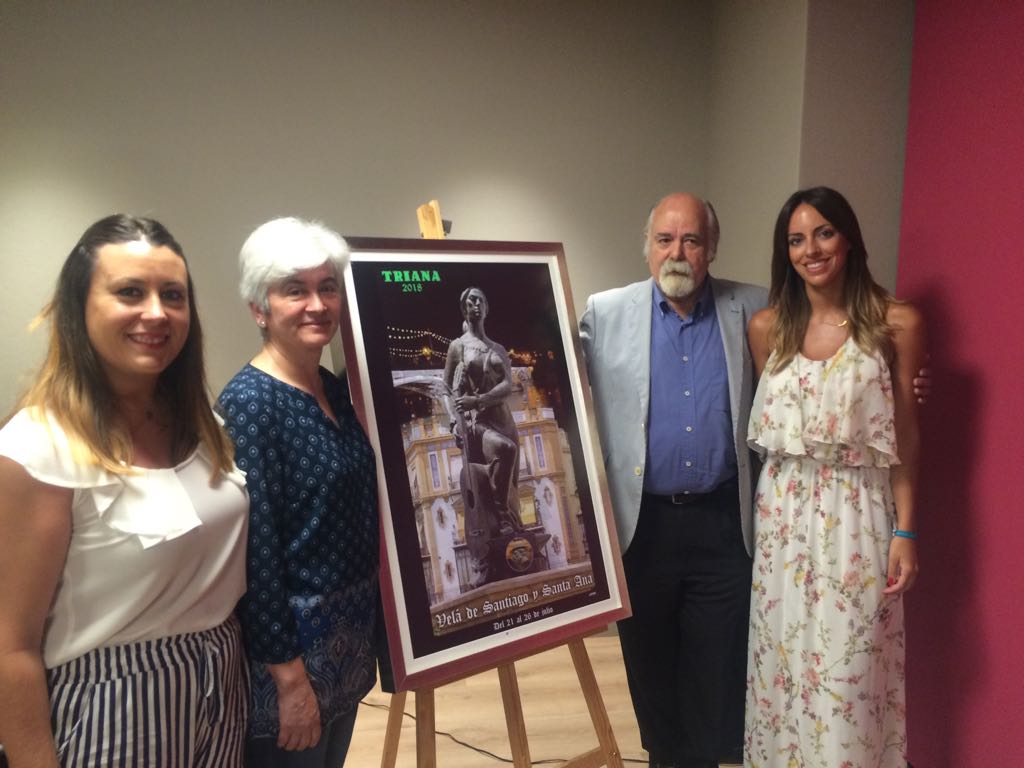 Jesús Gavira es el autor del cartel anunciador de la Velá de Santiago y Santa Ana, en el año en que se estrena como Fiesta Mayor de Sevilla. El Distrito de Triana y la Comisión Organizadora de la Velá presentaron ayer el cartel, una composición que utiliza distintas técnicas, entre ellas, la fotografía.