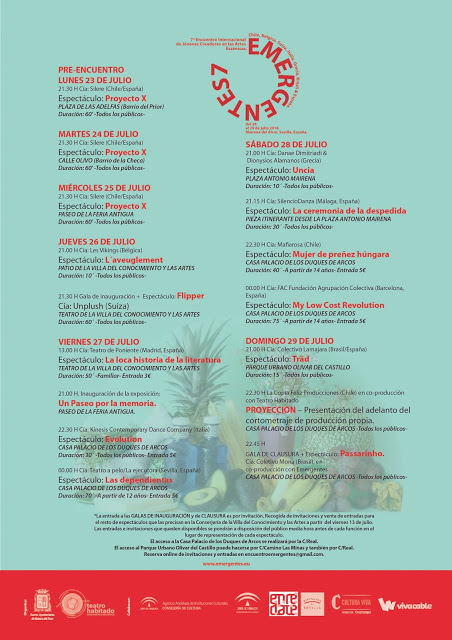 Llega una de las semanas más esperadas del verano mairenero de la mano de la séptima edición de Emergentes - Encuentro Internacional de Jóvenes Creadores en las Artes Escénicas. Mairena del Alcor volverá a convertirse en un punto de referencia de la creación joven del 23 al 29 de julio. Ya pueden adquirir sus entradas y conseguir sus invitaciones en la Villa del Conocimiento y las Artes o a través del correo encuentroemergentes@gmail.com.