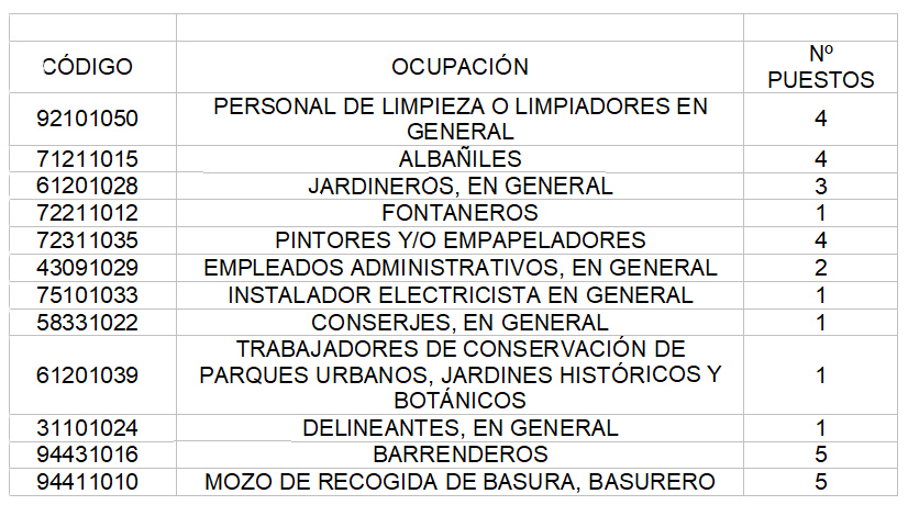 Los perfiles y ocupaciones solicitadas para la iniciativa de Empleo Local de 45 años o más y desempleados de larga duración con especial cobertura a las personas de 55 años en adelante, son los siguientes: