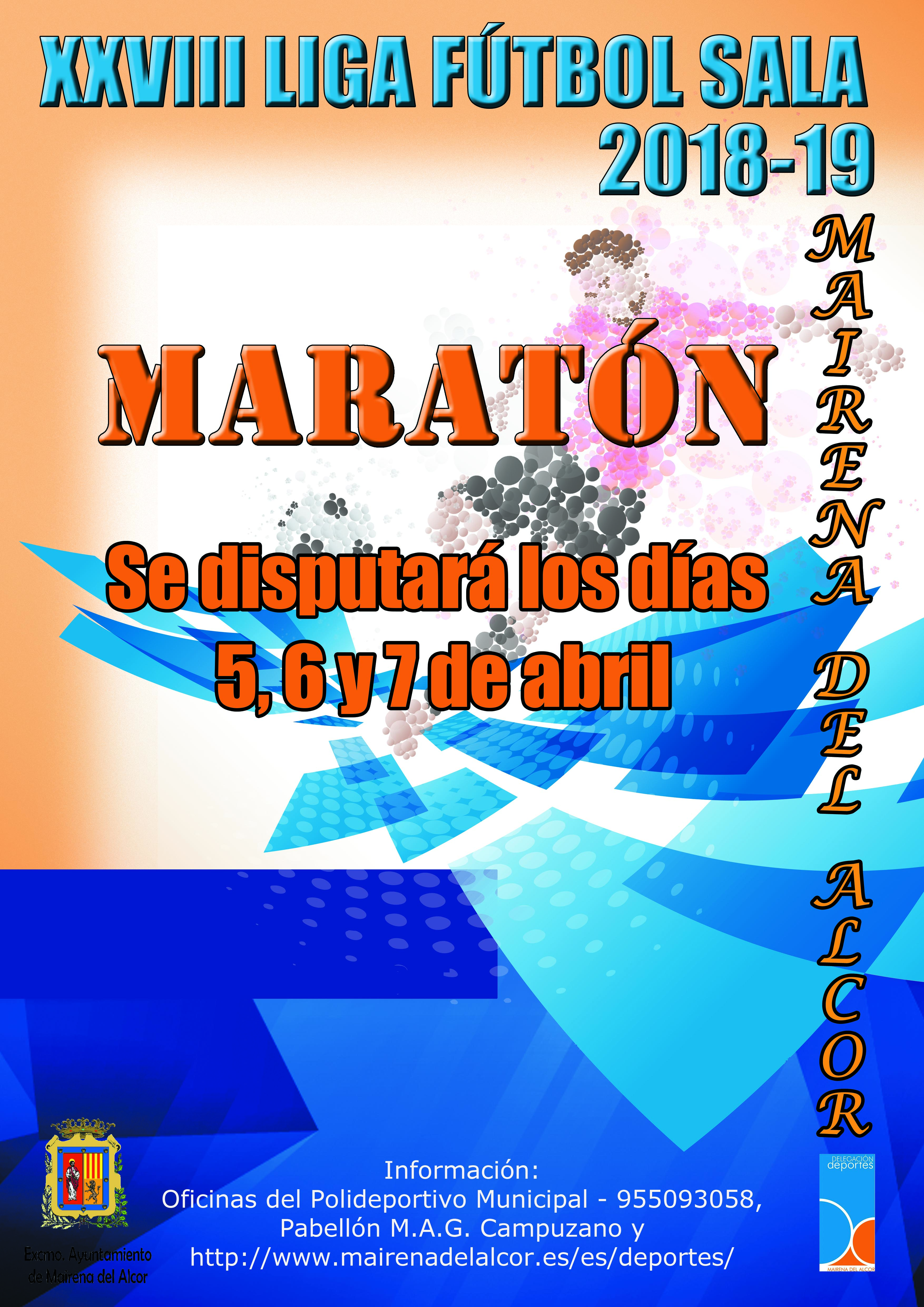 5 al 7 de abril en los pabellones Antonio García Martínez y Miguel Ángel Gómez Campuzano. Al finalizar se llevará a cabo la entrega de trofeos de la XXVIII Liga Local de Fútbol Sala y del I Maratón Local de Fútbol Sala.