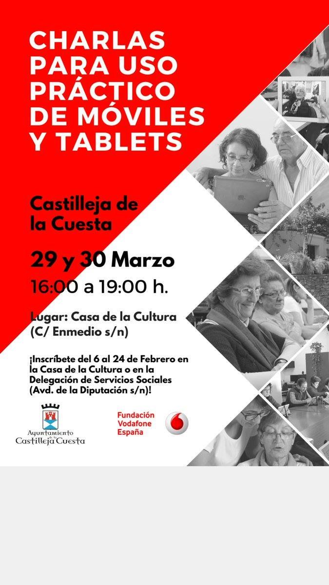 Fecha inicio Mié, 29/03/2017 - 20:30 Fecha fin Jue, 30/03/2017 - 12:00 Imágenes Ubicación Categoría evento Bienestar social Mostrar en el carrusel de la sección No Más información http://www.castillejadelacuesta.es/es/actualidad/eventos/CHARLA-PARA-USO-PRACTI…