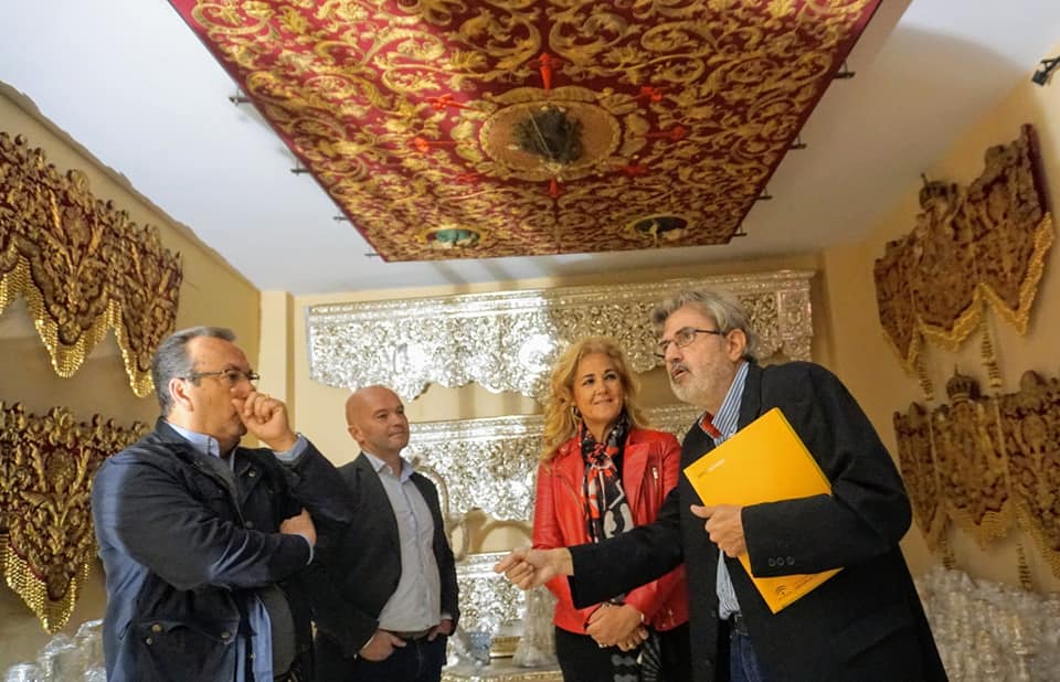 El delegado de Cultura en Sevilla, José Manuel Girela de la Fuente, y la alcaldesa, Carmen Herrera, han visitado hoy la Casa Hermandad de la Hermandad Sacramental de Santiago Apóstol de Castilleja de la Cuesta, junto a su Hermano Mayor, Diego Villar, y el director del Instituto Andaluz del Patrimonio Histórico (IAPH), Lorenzo Pérez del Campo.