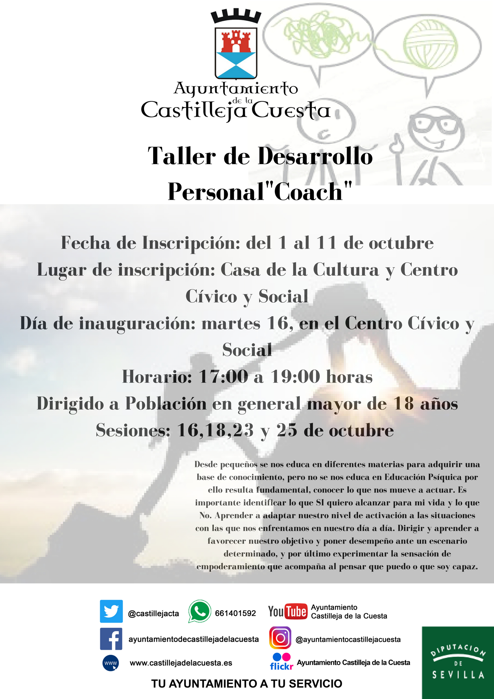 Taller de Desarrollo Personal y Coach: inscripciones del 1 al 10 de octubre.