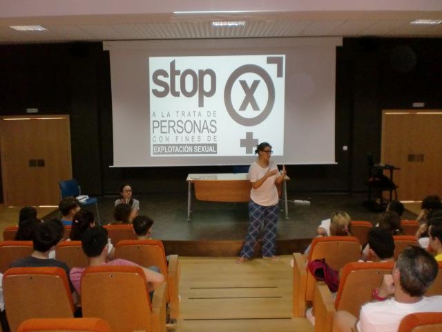 La actividad, desarrollada en el Centro Cívico y Social, se inició con una dinámica con chicos y chicas, para que se pusieran en la piel de una víctima de trata y concienciarles del problema que supone. A continuación, se realizó una exposición por parte de Carla Cingolani, coordinadora de investigación de Mujeres en Zona de Conflicto, y Cristina Herrera, coordinadora de intervención de la misma organización. De una forma dinámica y participativa, se aclararon conceptos en torno a la trata, se explicó su relación con la prostitución, se desmontaron falsos mitos sobre estos temas y se dieron algunos consejos para colaborar en la lucha contra este grave fenómeno, que atenta contra los Derechos Humanos.