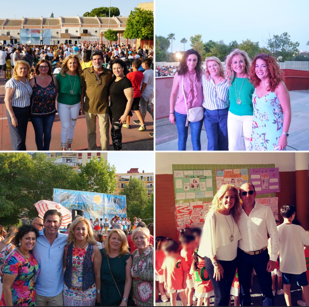 Finalmente, la alcaldesa asistió a la fiesta de fin de curso del Colegio Hernán Cortés, acompañada del director del centro, Santiago Herrera, el presidente del AMPA, Jesús Macarro, y de las delegadas del Ayuntamiento de Castilleja.