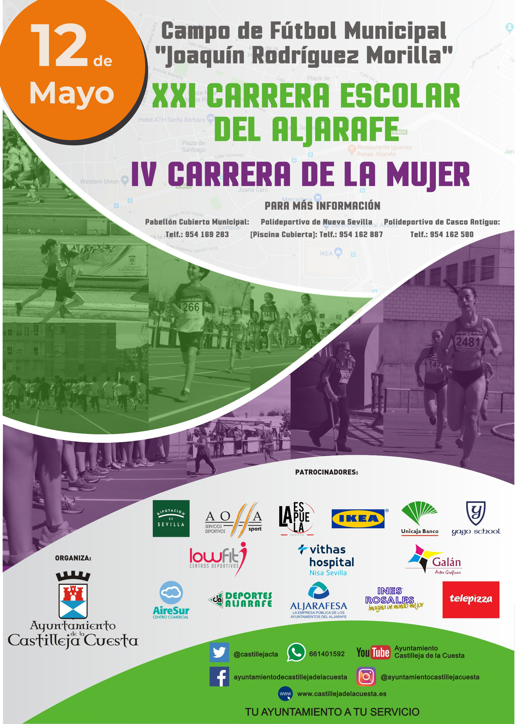 Mañana primaveral con un sol radiante, idónea para vivir el deporte, la que amaneció el pasado sábado, 12 de mayo, para acoger la XXI Carrera Escolar del Aljarafe y la IV Carrera de la Mujer, jornada la cual contó con la presencia de Dña. Carmen Herrera Coronil, Alcaldesa Presidenta y con los Tenientes de Alcalde D. Miguel Ángel Espinosa de los Montero Girón y D. Ricardo Raposo Benítez.
