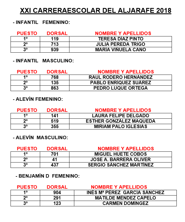 A las 14:00 se dio por concluida la XXI Carrera Escolar del Aljarafe y de la IV Carrera de la Mujer, resultando todo un éxito en cuanto a participación y deporte.