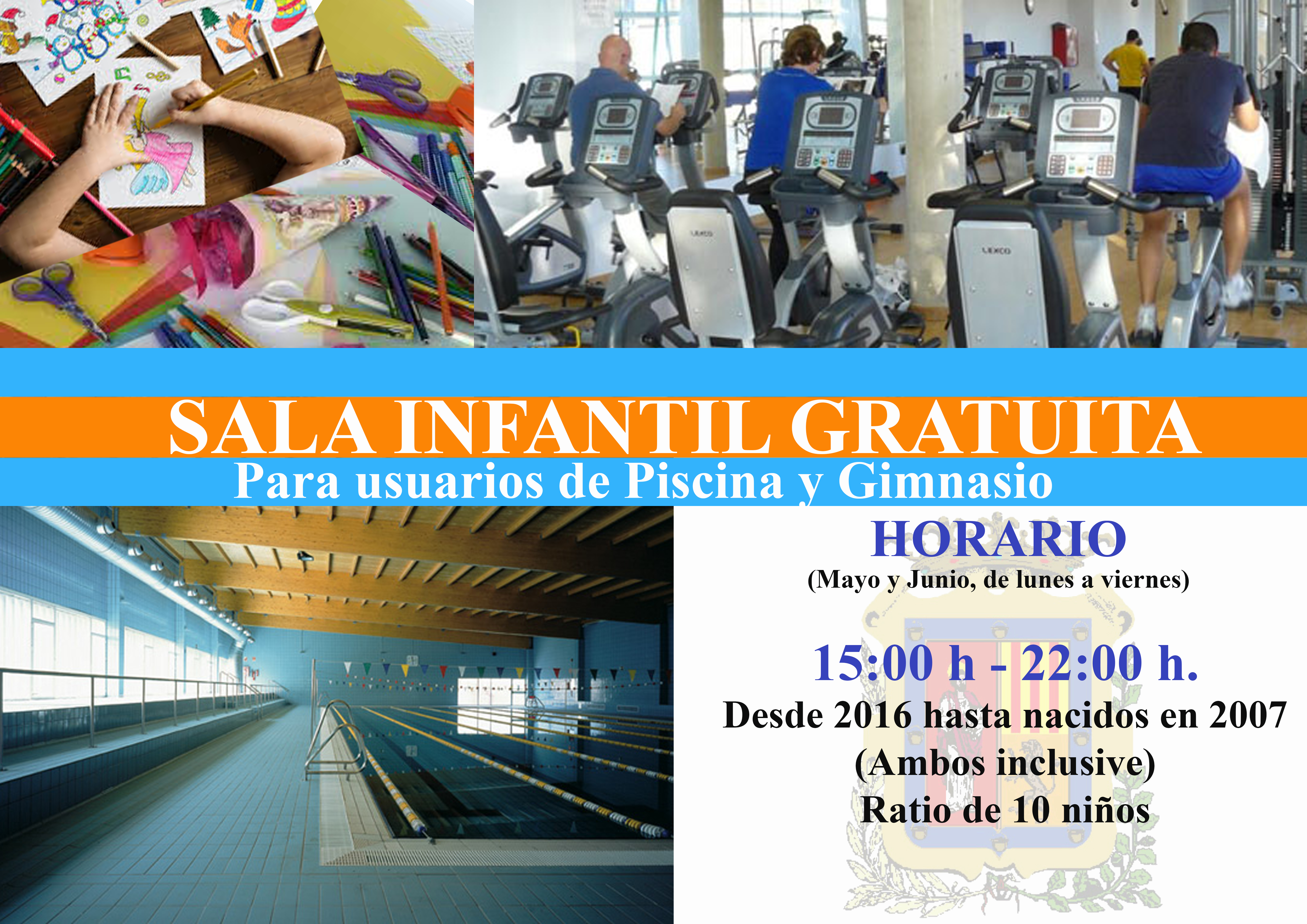 1. A partir del lunes 6 de mayo los padres podrán reservar plaza para su hijo en la sala infantil llamando al teléfono 955748867 o acudiendo a la recepción de la piscina cubierta.