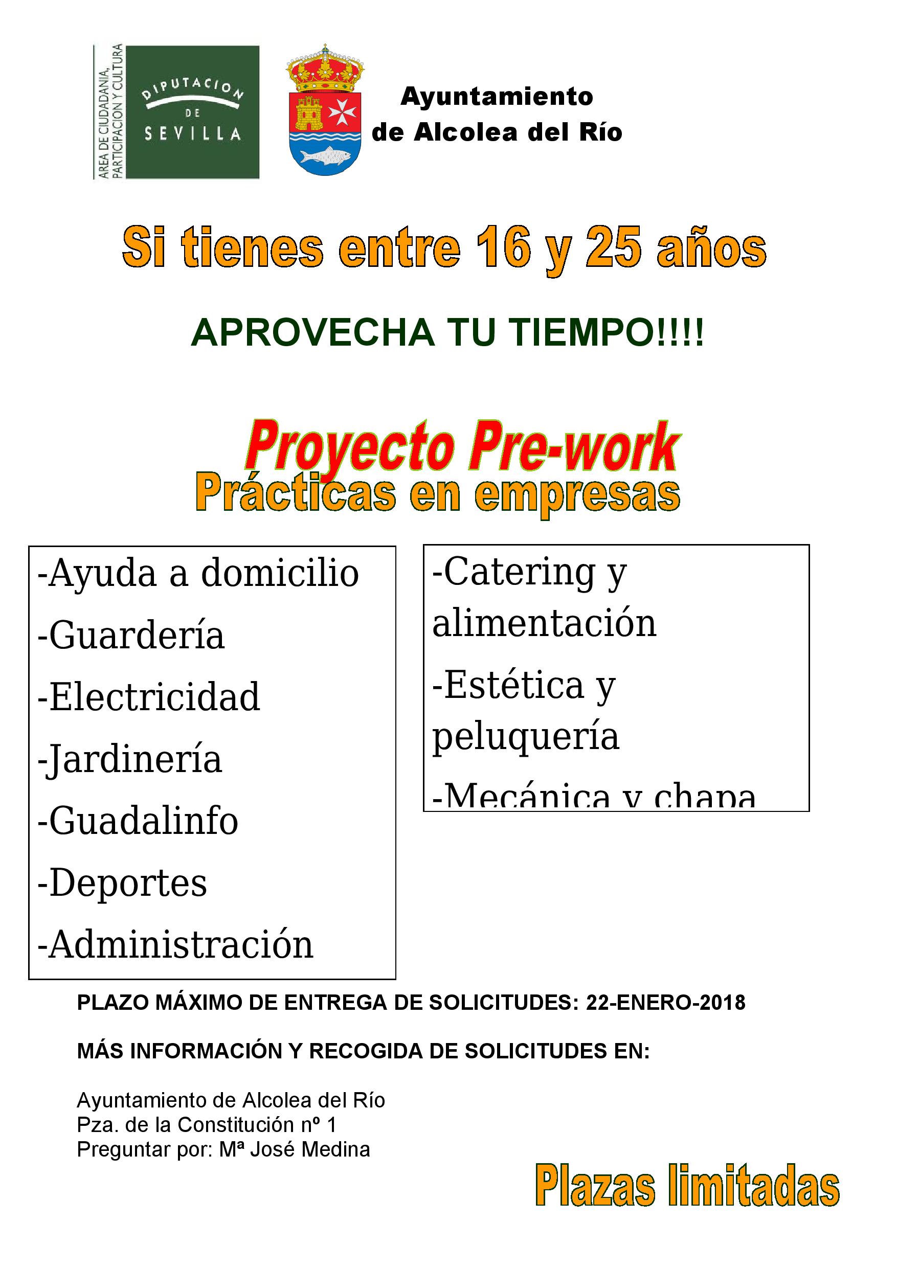 Imagen Imágenes Ubicación Categoría noticia Formacion y Empleo Mostrar en el carrusel de la sección No Fecha Lun, 01/01/2018 - 12:32 Más información http://www.alcoleadelrio.es/es/actualidad/noticias/PRE-WORK-2022/