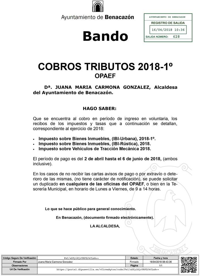 Desde el Ayuntamiento de Benacazón te informamos de que hasta el 6 de
