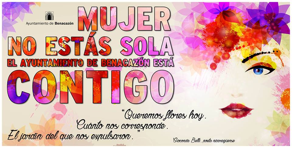 Esta pancarta, de dos metros de largo por uno de ancho, lucirá el eslogan "Mujer, el Ayuntamiento de Benacazón está contigo" durante toda la semana en el balcón de Alcaldía de la casa consistorial y está inspirado en un poema de la escritora nicaragüense Gioconda Belli, del cual incluye los tres últimos versos. A continuación, reproducimos el citado poema: