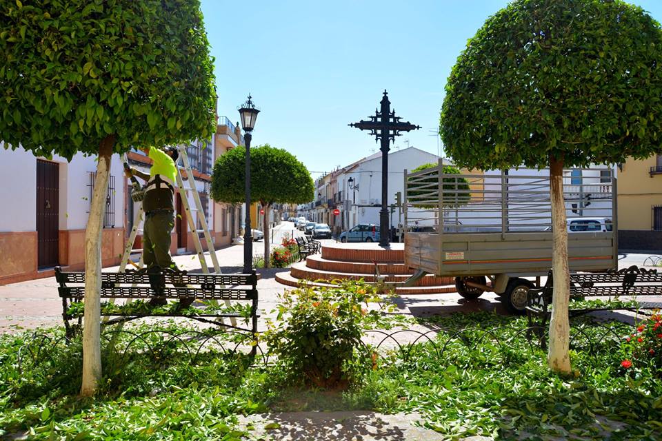 Concretamente, en Mayo se ha venido trabajando intensamente en la poda de los árboles y zonas ajardinadas de las siguientes zonas o espacios: Plaza de las Provincias, Plaza de la Cruz Mármol, Parque de los Olivos, Plazas del Pueblo Andaluz, Parque de Cantarranas, Plaza del Alcázar, Piscina municipal, Parque Municipal, Polideportivo Municipal, exteriores del IES Virgen del Rosario, rotondas de Avenida San Sebastián con Avenida de Sanlúcar la Mayor, zona verde situada frente a calle Jagüey Grande (monumento Noria), arbolado y jardines de Avenida de Sanlúcar la Mayor, arbolado de Avenida de Andalucía, arbolado de Avenida de Aznalcázar, arbolado de calle Sevilla, arbolado de calle Los Jaenes, arbolado de calle Celada, ermita de Castilleja de Talhara y ermita de Gelo.