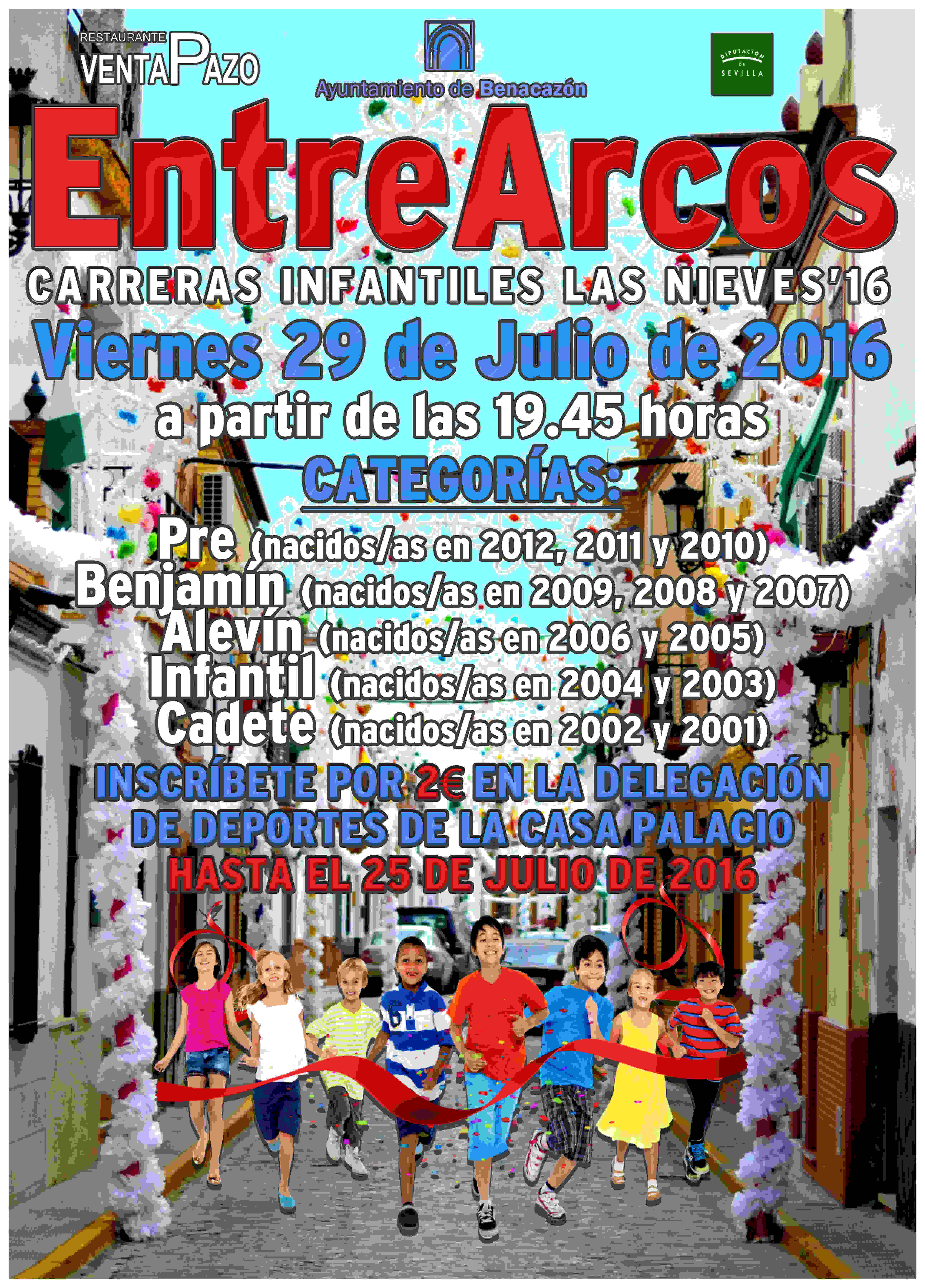 Las Carreras Infantiles "EntreArcos", que está organizada por la Delegación de Deportes del Ayuntamiento de Benacazón, patrocinada por el Restaurante Venta Pazo y cuenta con la colaboración de la Federación Andaluza de Atletismo (Delegación Sevilla), está enfocada a niños y niñas en edad escolar y jóvenes, por lo que se compone de 5 categorías en función de la edad de los participantes, con distancias acordes a sus capacidades.