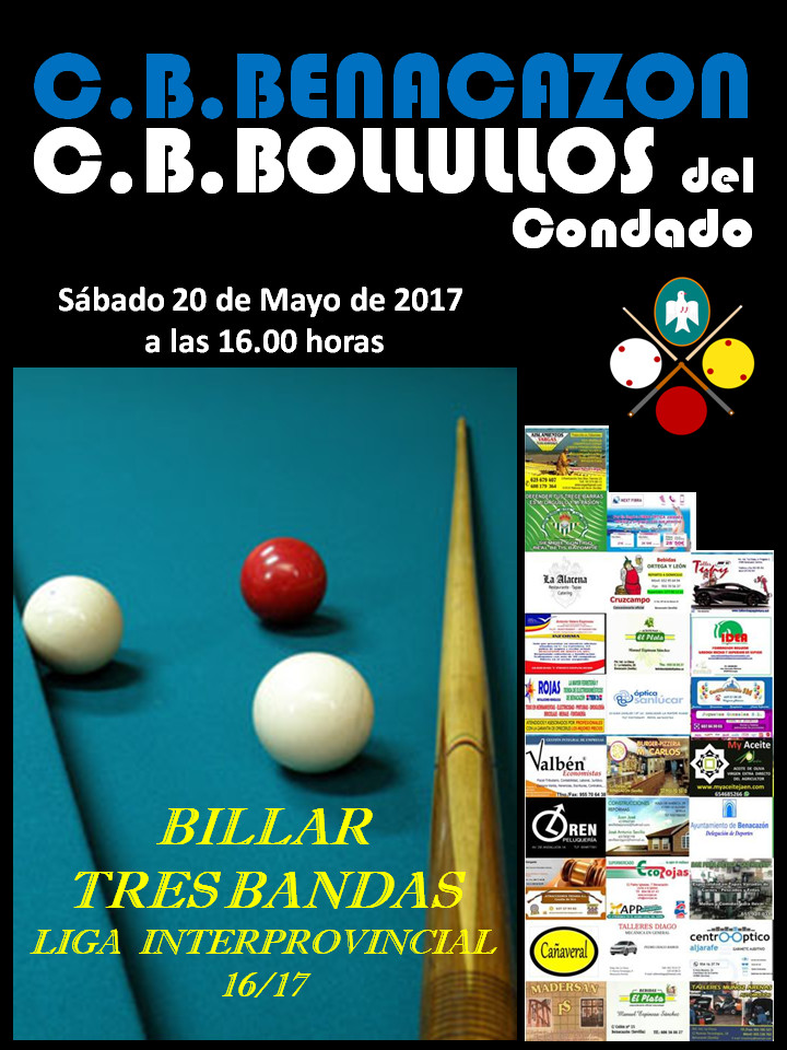 2016/2017 de "Billar a Tres Bandas", que tendrá lugar el sábado 20 de Mayo a las 16.00 horas en la