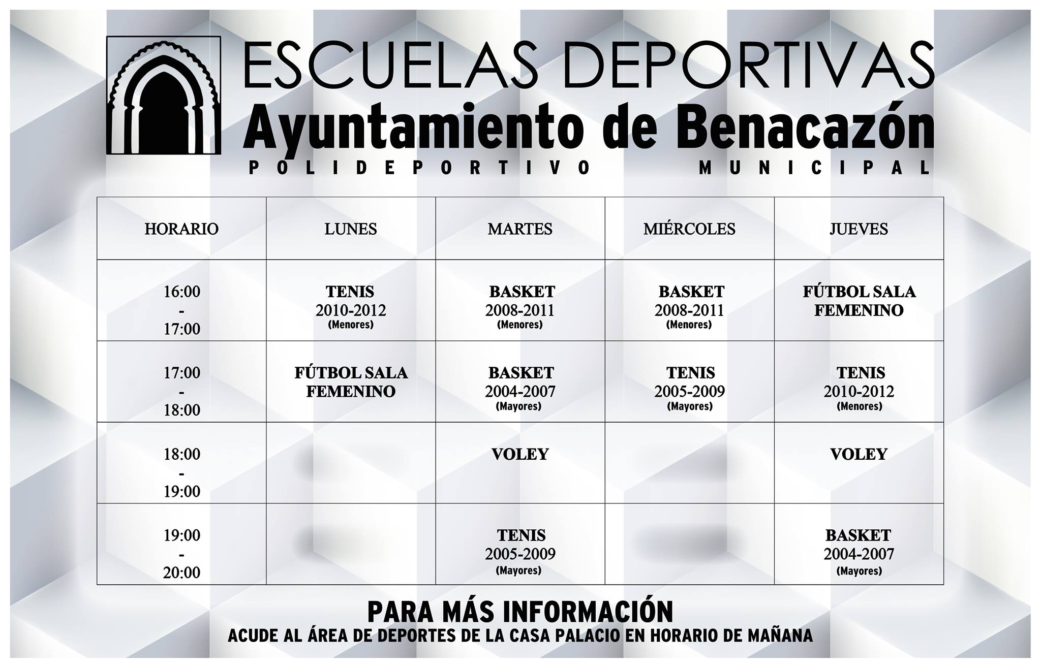 el horario de las nuevas Escuelas Deportivas que nuestra Delegación de Deportes desarrollará