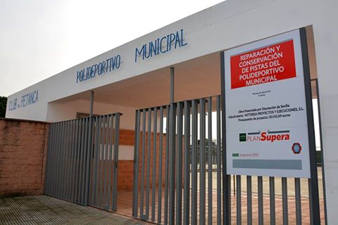 Estos importantes trabajos se realizan en base a la línea especial para instalaciones deportivas del S upera IV de la Diputación de Sevilla, licitadas por la empresa Inttersa Proyectos y Ejecuciones S.L. con un presupuesto superior a 30.000 €. Estos trabajos consisten en diferentes mejoras en las pistas polideportivas, pistas de pádel, pistas de petanca y los cerramientos perimetrales del recinto.