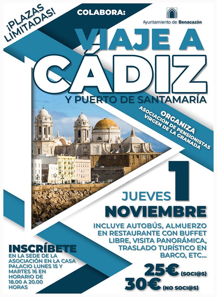 viaje a Cádiz y Puerto de Santa que tendrá lugar el jueves 1 de Noviembre de 2018. Esta visita ha