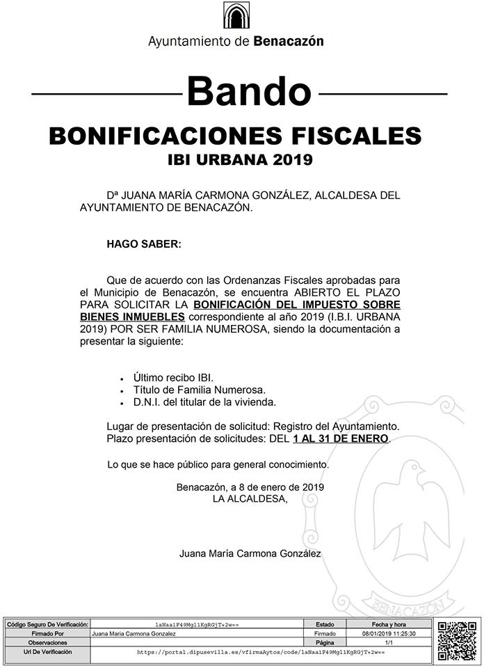 solicitar la bonificación del impuesto sobre bienes inmuebles correspondiente al año 2019 (IBI