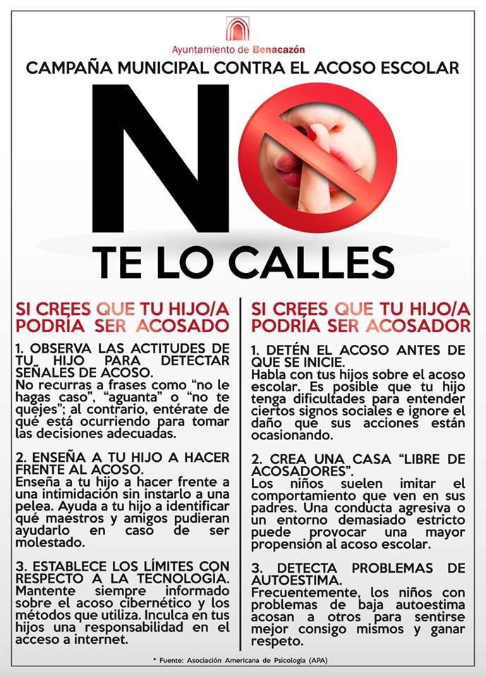 primeros días de curso nuestra Campaña de Concienciación contra el Acoso Escolar "No te lo calles",