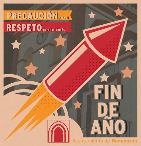 Por todo ello, desde el Ayuntamiento de Benacazón te pedimos PRECAUCIÓN para ti mismo Y RESPETO con los demás, en el uso de material pirotécnico en la Plaza del Ayuntamiento durante las campanadas de Fin de Año.