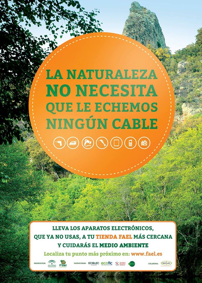 El convenio suscrito entre la Federación Andaluza de Electrodomésticos (FAEL) con los sistemas colectivos de responsabilidad ampl iada ECOLEC, ECOTIC, European Recycling Platform-ERP y RECYCLIA, y la planta de tratamiento de residuos RECILEC, para impulsar la correcta recogida y reciclado de residuos de aparatos eléctricos y electrónicos (RAEE) ha posibilitado la puesta en marcha de esta Campaña de Información y Sensibilización para la gestión responsable de los RAEE en Andalucía: "La naturaleza no necesita que le eches ningún cable" con el objetivo de aumentar la cuota de recogida de RAEE en Andalucía. En concreto, se trata de fomentar la recogida del pequeño aparato electrodoméstico.