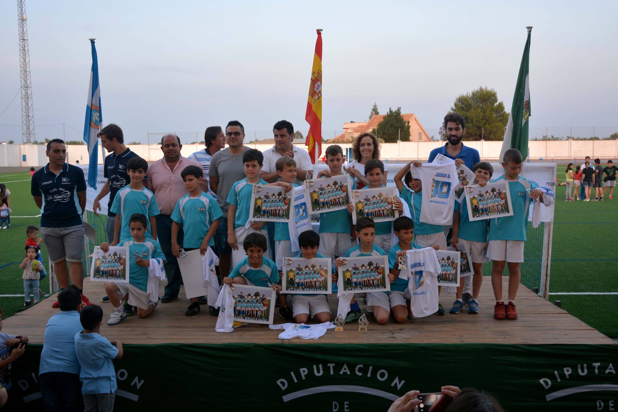 Desde el Ayuntamiento de Benacazón te mostramos una selección de imágenes tomadas durante la Gran Fiesta de Clausura de la Escuela Deportiva del club de futbol local, que tuvo lugar el pasado viernes 26 de Mayo de 2017 en el Estadio Municipal "Guadiamar". Durante este acto se procedió a la entrega de trofeos por parte de la Junta Directiva del Club y de diferentes autoridades municipales, como la Alcaldesa Juana Mª Carmona y el Concejal de Deportes, Iván Solís. En este evento organizado por el Benacazón C.F. se homenajeó a los más de 200 niños inscritos en esta Escuela Deportiva por su constancia y dedicación al "deporte rey" y, sobre todo, por su afán de superación y compañerismo. Desde estas líneas, el Ayuntamiento de Benacazón desea felicitar a los jóvenes deportistas benacazoneros, así como mostrar nuestro agradecimiento al Benacazón C.F, a su Junta Directiva y a su cuerpo técnico, por su contribución a la salud, al bienestar emocional y a la integración social de los menores.