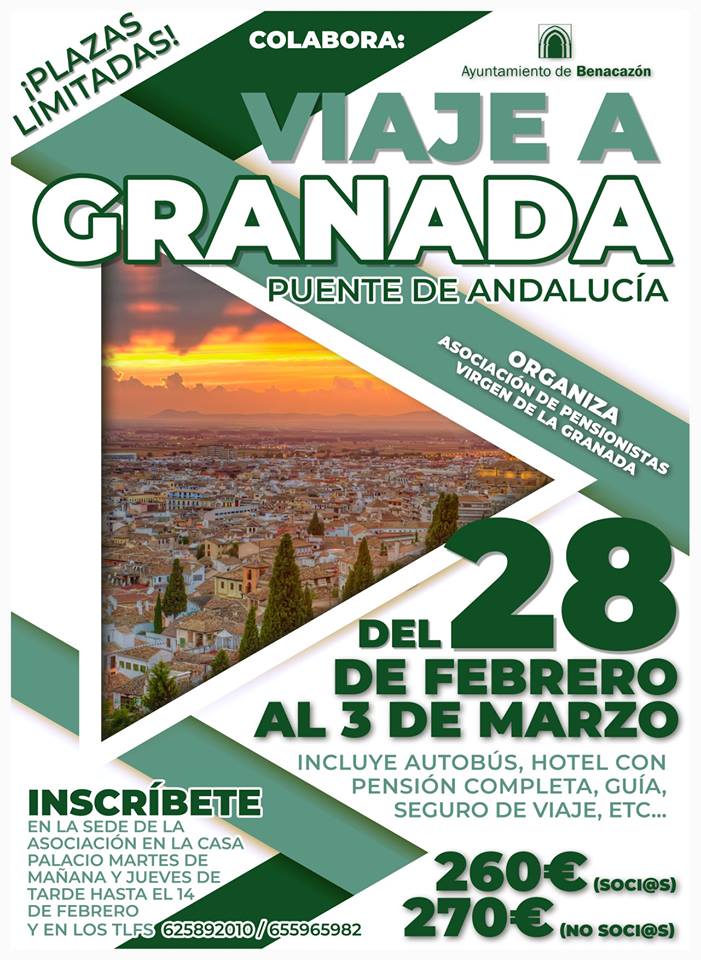 viaje a Granada que tendrá lugar del 28 de Febrero al 3 de Marzo de 2019 para conmemorar el Puente