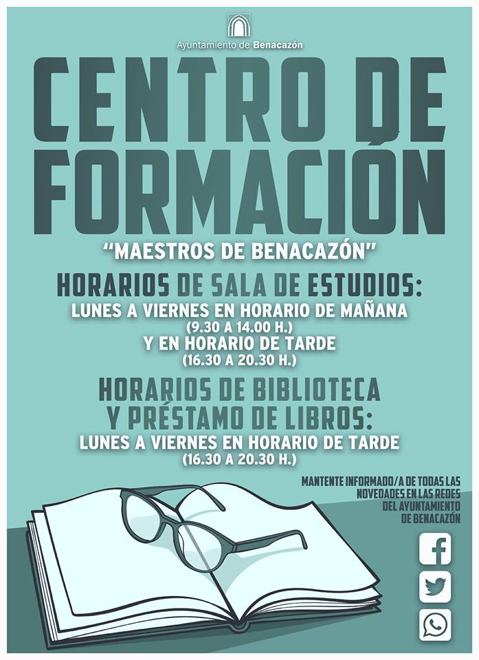 de la Sala de Estudios y la Biblioteca Municipal, ubicadas en el Centro de Formación "Maestros de