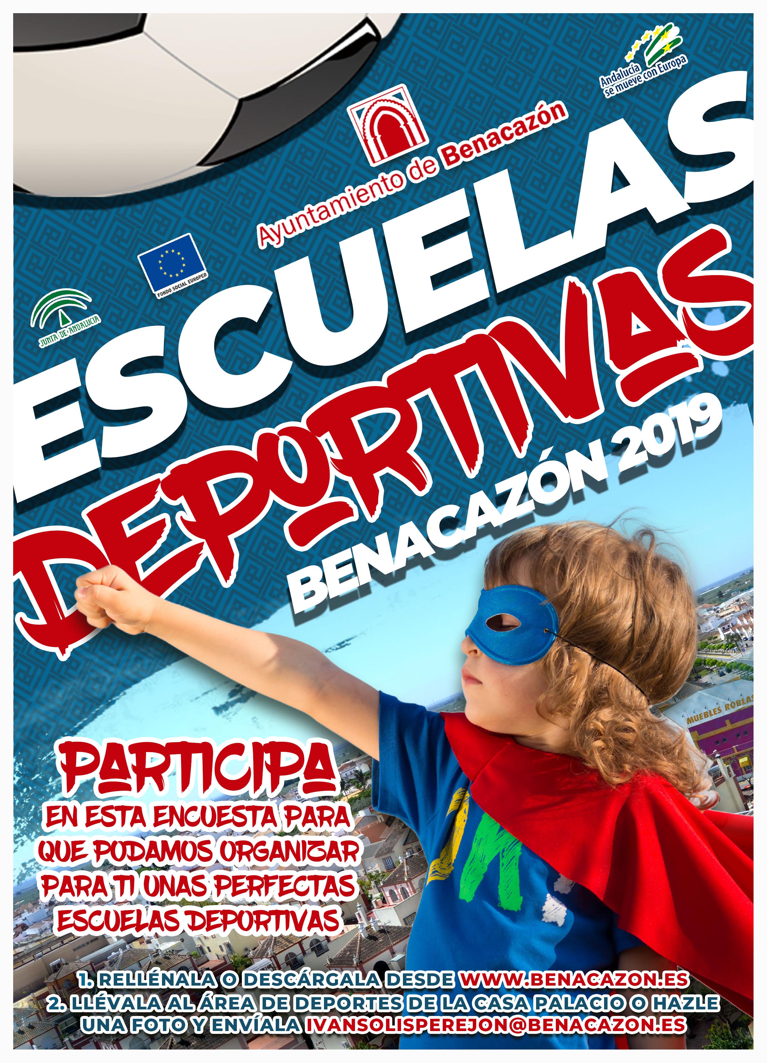 Desde el Ayuntamiento de Benacazón te animamos a inscribir a tus hij@s y participar en esta encuesta para que podamos organizar unas escuelas deportivas perfectas y a la medida de las necesidades deportivas de l@s niño@ y jóvenes del municipio.